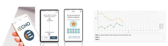 MittEcho appen gir barna muligheten til å sende ukentlige tilbakemeldinger om hvor fornøyd de er med måloppnåelse og hvor stort symptomtrykk barna opplever.